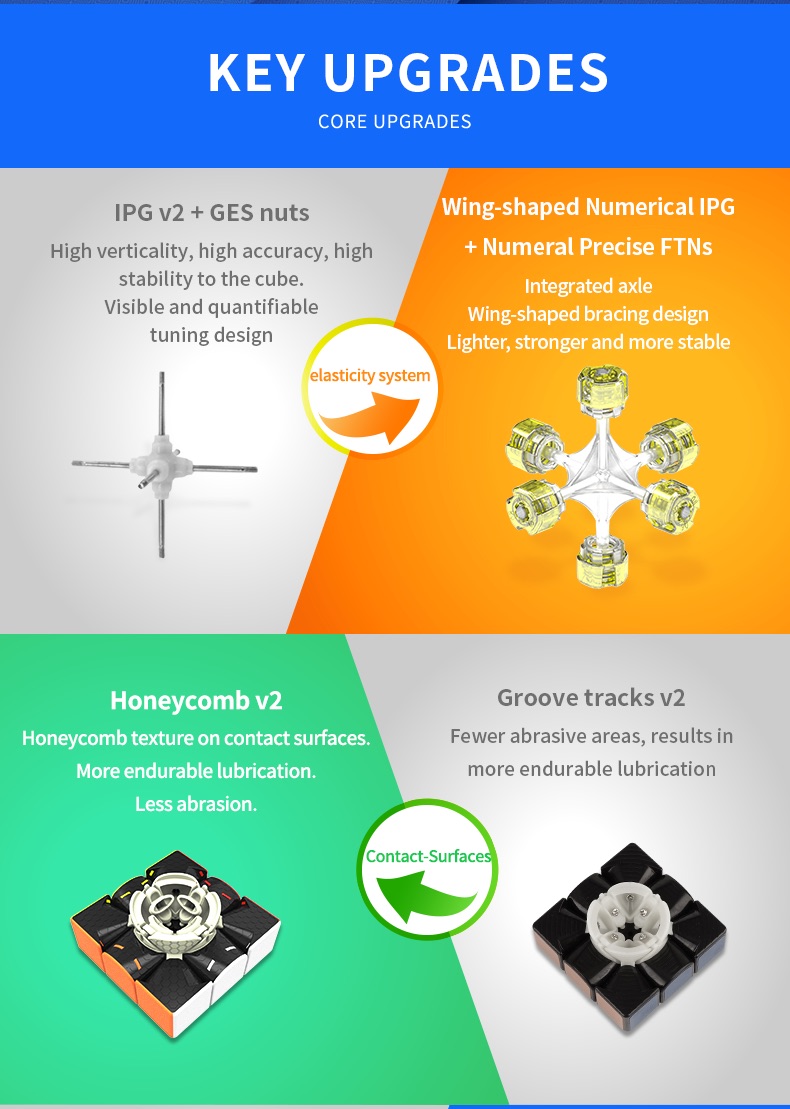 Das GAN 356 RS ist das neueste Update des beliebten preisgünstigen des GAN 356 R 3×3-Speedcubes. Dieses Puzzle bietet das weiche, präzise GAN-Gefühl, das für ihre Würfel charakteristisch ist. Mit 72 g stellt dieses Puzzle die Schnittstelle zwischen modernster Technik und Budgetüberlegung dar. Der 356 RS enthält viele neue Verbesserungen des Kerns durch die GES- und IPG-Systeme. Zusätzlich wird ein neues Wabendesign implementiert, um sicherzustellen, dass das Schmiermittel gleichmäßig auf den Teilen verteilt ist, um ein perfektes glattes Gefühl zu erzielen. Der RS wird mit vorinstalliertem gelbem GES geliefert.