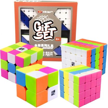Das Geschenkset von YongJun besteht aus 4 Würfeln (2×2, 3×3, 4×4, 5×5) sowie einer Kurzanleitung zum lösen. Sie zeichnen sich durch professionelle Qualität zum kleinen Preis aus. Die Würfel haben lebendige Farben und bieten ein fantastisches Drehgefühl.